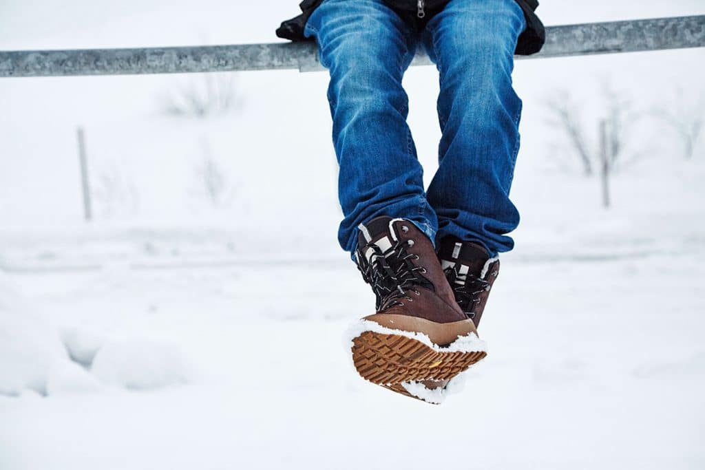Zimní obuv je nezbytná. V České republice existovalo „železné pravidlo“: zimní boty nebo holínky se kupovaly o půl čísla větší, někdy i o celé číslo. To umožňovalo nosit tlusté vlněné ponožky a ponechávalo prostor pro cirkulaci teplého vzduchu uvnitř.